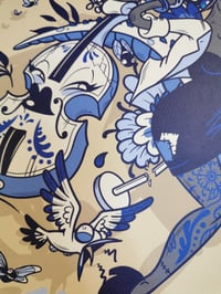• enhanced by hand with pearlescent blue ink (possible variations)
